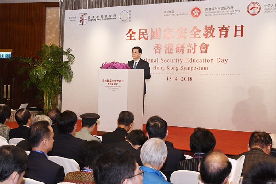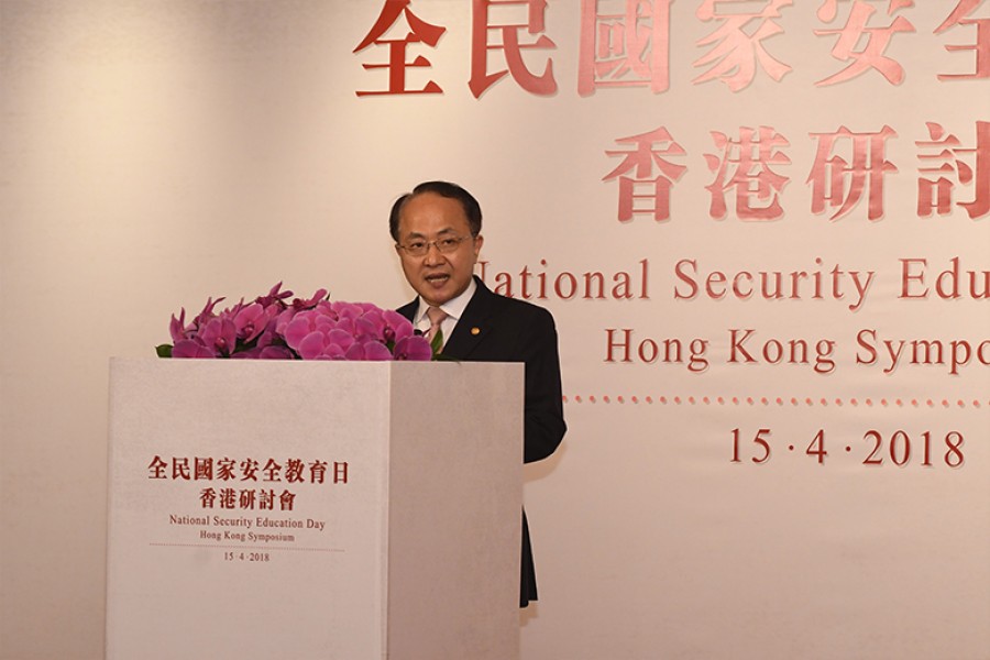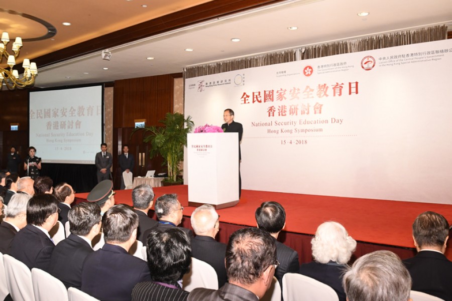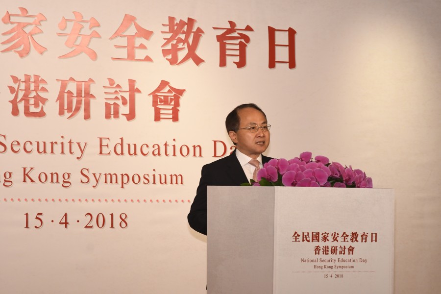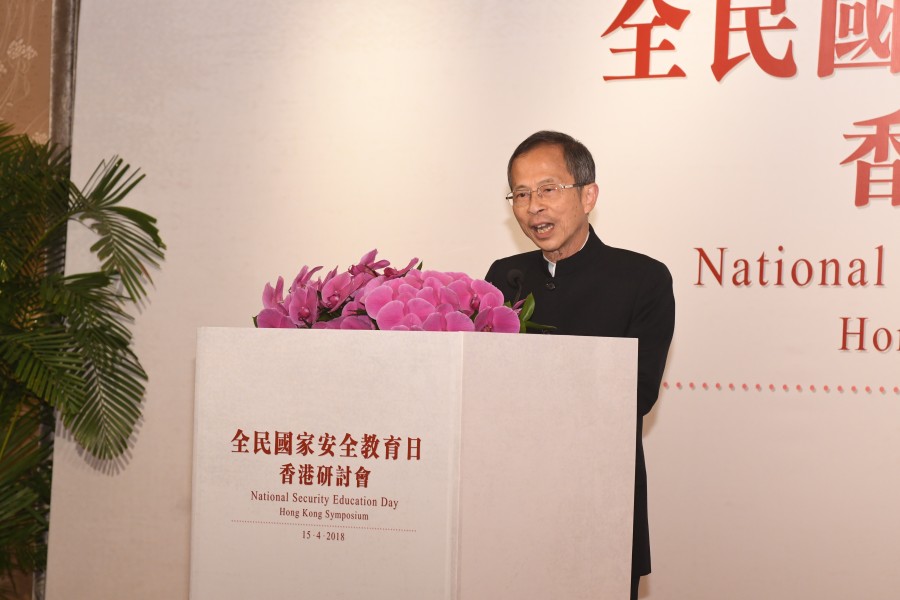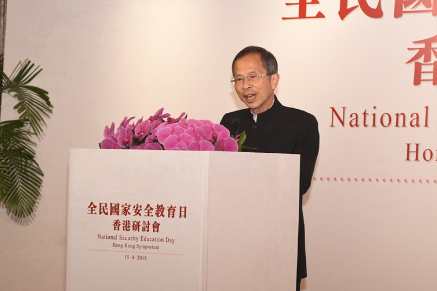 中央人民政府駐香港特別行政區聯絡辦公室王志民主任於全民國家安全教育日香港研討會上致辭。