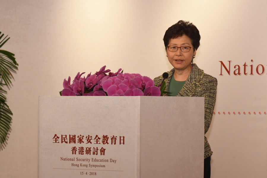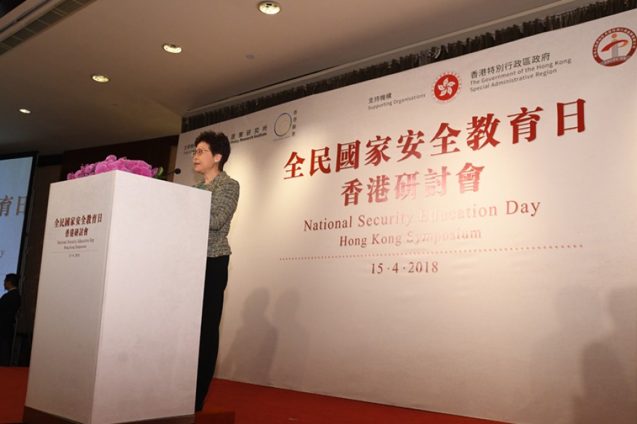 行政長官林鄭月娥於全民國家安全教育日香港研討會上致辭。